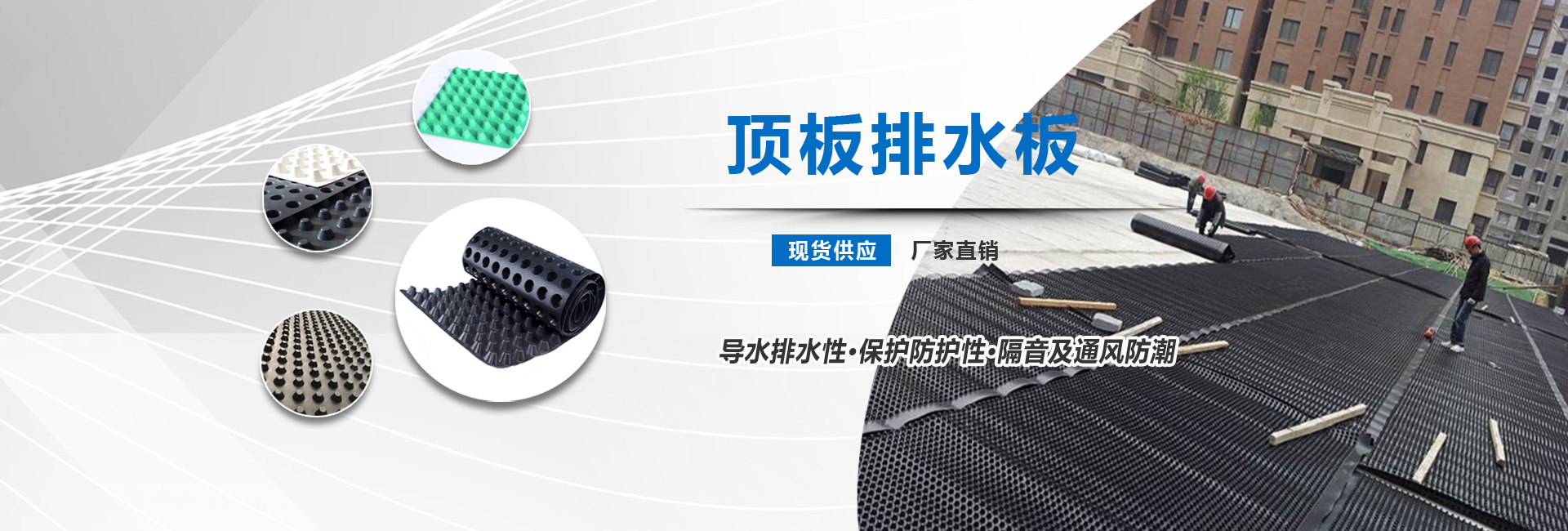 排水板是由聚苯乙烯(HIPS)或者是聚乙烯(HDPE)塑膠底板經(jīng)過(guò)沖壓制成圓錐突臺(tái)或者加勁肋的凸點(diǎn)(或中空?qǐng)A柱形多孔)而成,幅寬有3米,長(zhǎng)度有10米或者是15米。 施工中常用的排水